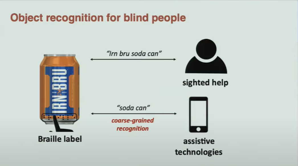 The ability to identify everyday objects can be one of the daily challenges that people with visual impairments face — particularly when trying to distinguish objects of different flavors, brands, or other specific characteristics, or to identify individuals in the environment.