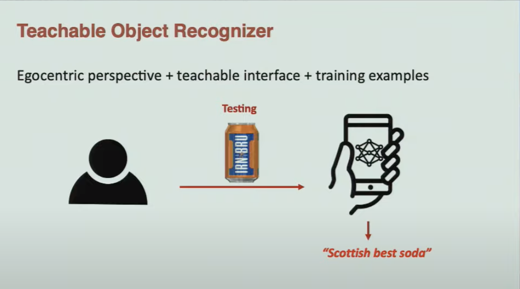 This project explores ways that existing recognizer technology (depicted in the slides above) can go beyond single items to handling items that appear in groups, such as those in a shopping setting. Slides are from a CHI 2019 presentation of “Hands Holding Clues for Object Recognition in Teachable Machines” by Kyungjun Lee and Hernisa Kacorri.